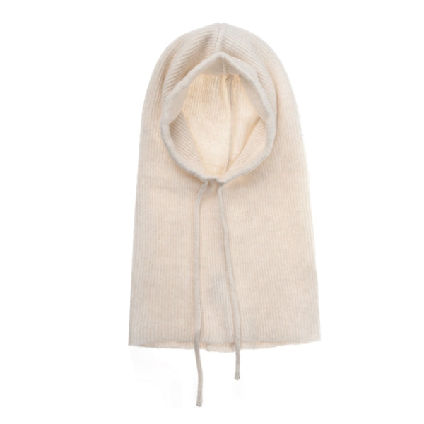 balaclava, offwhite, 30X56cm. 6% wol 20% spandex 30% acryl 44% polyester. 115gram. Muts en colsjaal tegelijk.