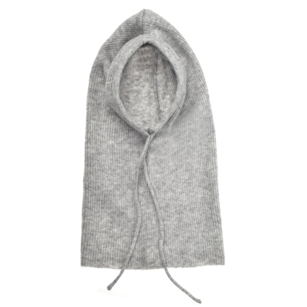 balaclava, grijs, 30X56cm. 6% wol 20% spandex 30% acryl 44% polyester. 115gram. Muts en colsjaal tegelijk.