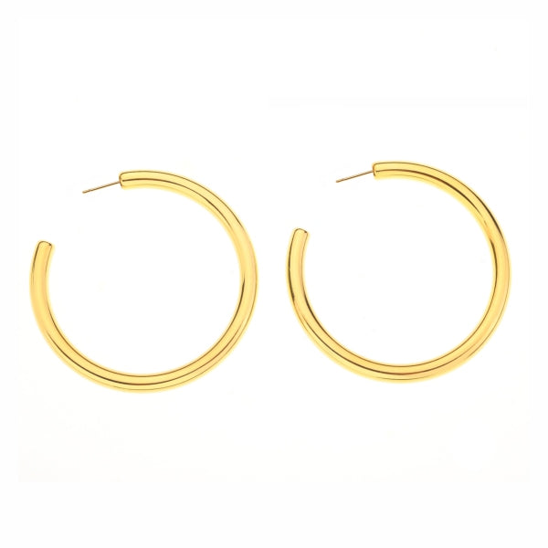 Tijdloze, elegante oorbellen met een glanzende afwerking. Gemaakt van hoogwaardig roestvrij staal – stijlvol, verfijnd en perfect voor elke gelegenheid. Goudkleurig. Diameter 6,5cm.
