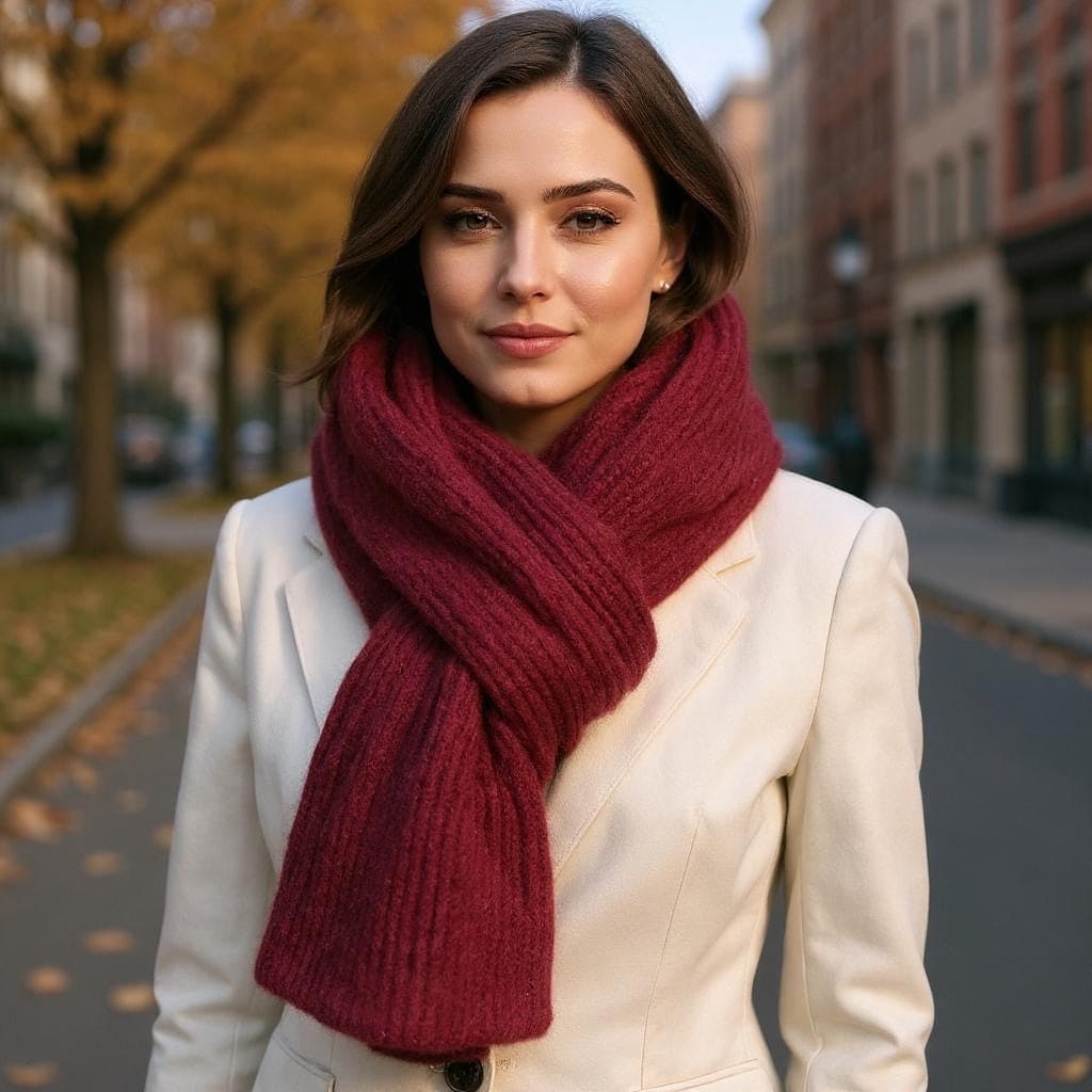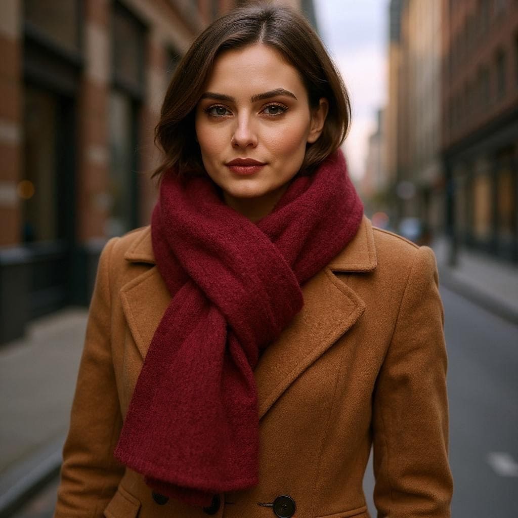 sjaal mohair achtig, bordeaux 40x200cm ,5% wol ,39% acryl, 53% gerecycled polyester, 3% spandex