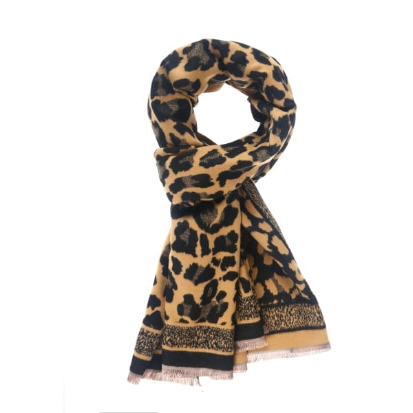 sjaal leopard bruin 65x180cm, 100% polyester, 300g.