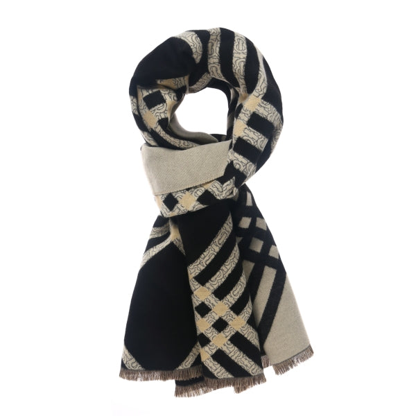 sjaal, ruiten, zwart, 65x180cm, 100% polyester, 300g. Kleine wimper franjes.