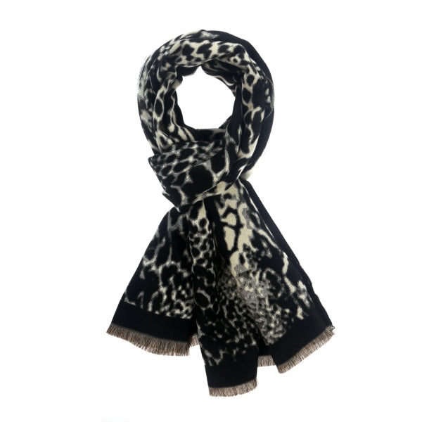 sjaal tijger print, offwhite, 65x180cm, 100% polyester, 300g. Kleine wimper franjes.