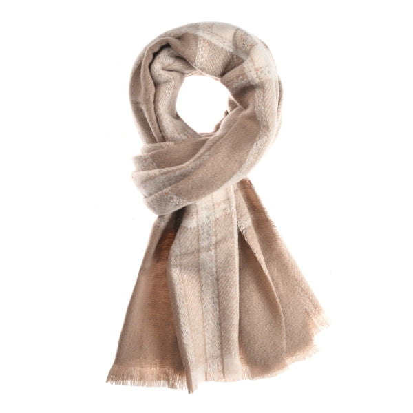 sjaal, grote ruit, beige, 65x190cm, 100% polyester, 250g Kleine wimper franjes.