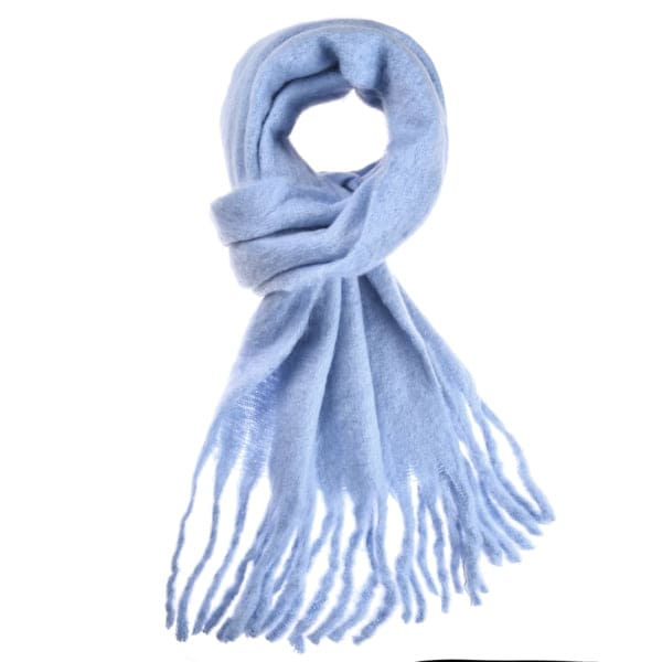 sjaal sponge, blauw, 38x180cm, 100% polyester , 245g, lange geknipte franjes van 15cm.