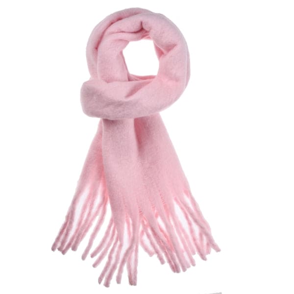 sjaal sponge, roze, 38x180cm, 100% polyester , 245g, lange geknipte franjes van 15cm.